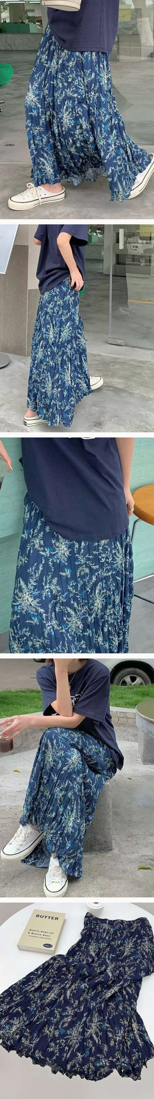시원한 블루계열꽃프린트가 예쁘게 주름진 밴딩스커트에요/
